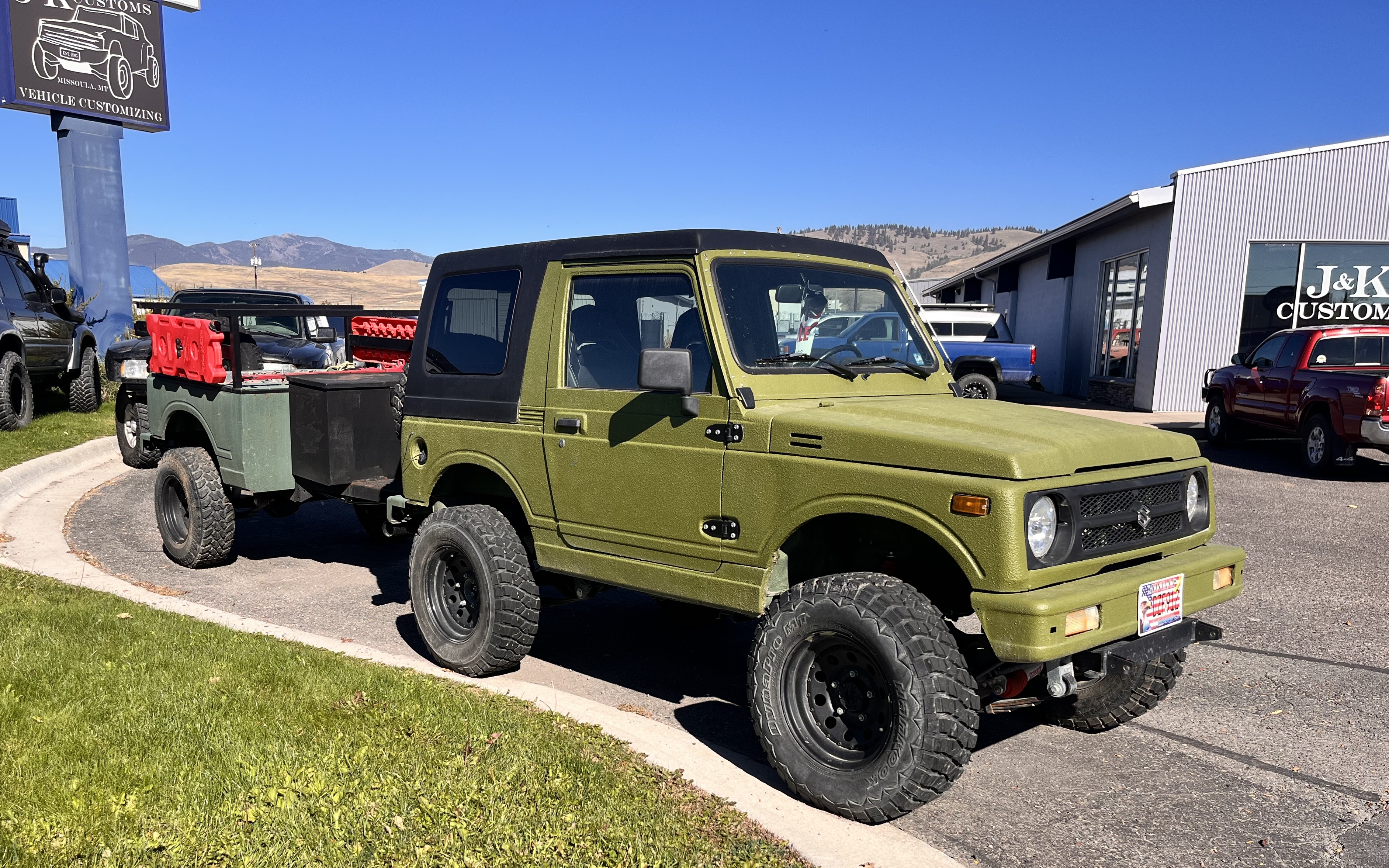 Custom Suzuki Samurai for sale w/ trailer included! 64,437 miles. Custom interior and matching accents on both the trailer and truck.